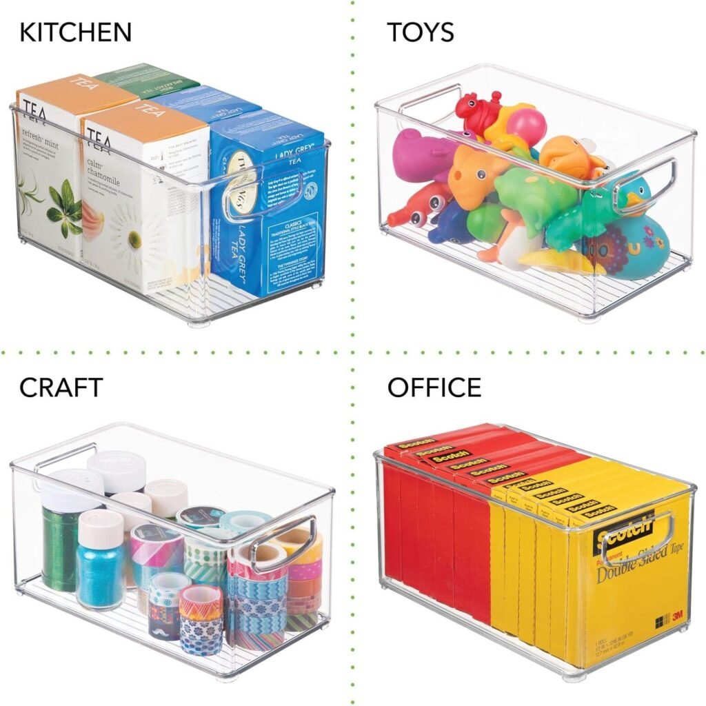 These clear plastic storage bins are perfect for small kitchens where every inch matters. Their simple, stackable design makes them ideal for snacks, sauces, or breakfast items, while their see through storage box style lets you spot exactly what you need at a glance. They bring order without adding clutter, giving your shelves a cleaner, brighter look.