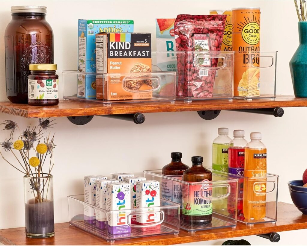 These pieces are more than just practical. They instantly elevate your space, turning chaotic shelves into a styled display. Think of them as the secret to both organizing small pantry spaces and creating that effortless, clutter free kitchen idea you see all over Pinterest. In this guide, I’ll share the best clear bins for pantry organization, from affordable basics to chic acrylic containers and complete airtight kitchen storage sets.