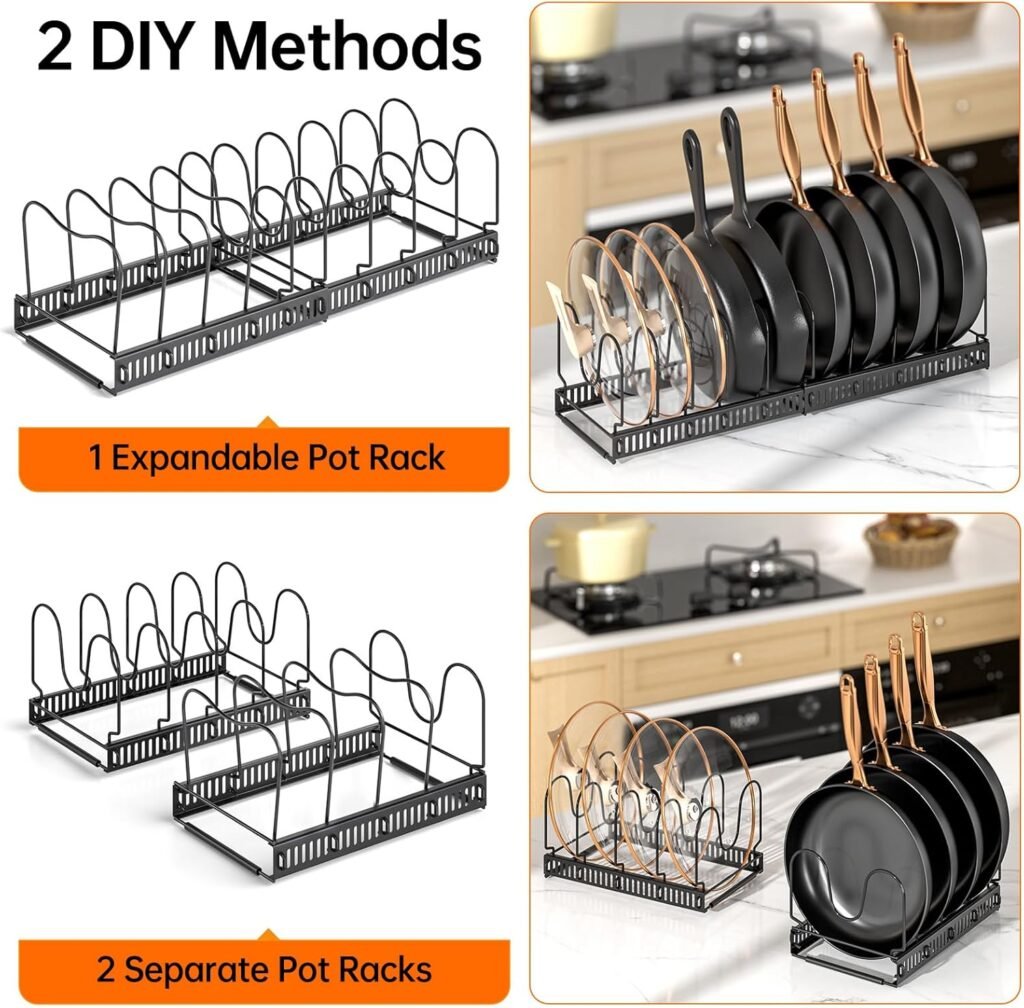 Implementing easy-to-apply corner cabinet hacks can maximize every inch of your storage. Consider examples like the MUDEELA Pots and Pans Organizer, an expandable metal rack that keeps pots, pans, and lids neatly arranged. This organizer adds calm and order beneath your cabinets, creating a peaceful kitchen space.